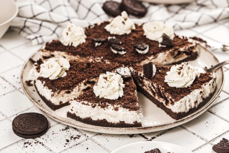 It features a buttery Oreo cookie crust, a light cream cheese filling whipped with crushed Oreos, and a crunchy topping that makes every bite irresistible. Plus, it doesn’t require any actual baking!